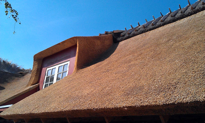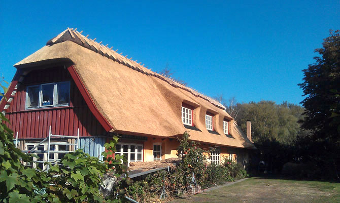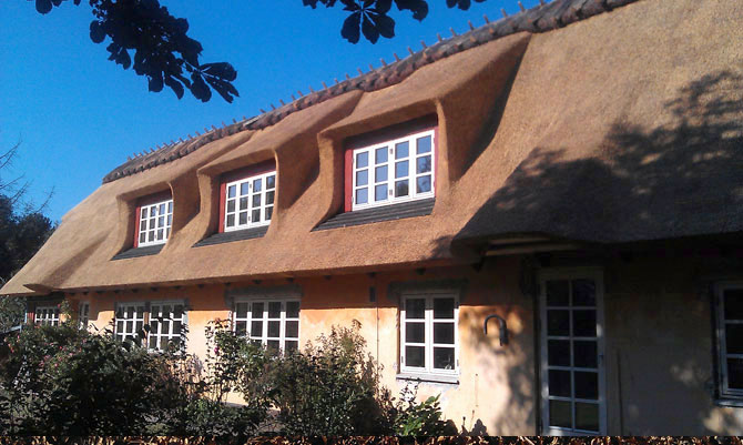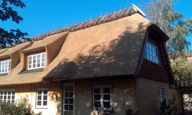Præsenterer en fremtrædende ejendom, der spænder over 890m² med et stråtag, der skiller sig ud gennem sine unikke og teknisk krævende elementer, herunder karakteristiske kviste, Velux-vinduer, samt varierende taghældninger, både flade og skæve. Udført med en eksklusiv Gilleleje-lyngrygning, anvendende metalnet og traditionelle rygtræer for at sikre både æstetik og holdbarhed. Opdag en dybere indsigt og udforsk en samling af fængslende billeder fra dette tækkeprojekt.