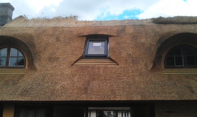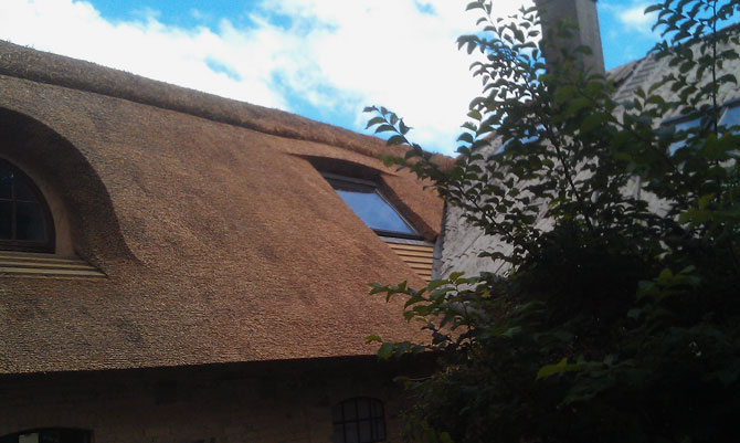 Installationen af et nyt 200 m² stråtag udstyret med Sepatec-teknologi på den sidste længe af en historisk firelænget bindningsværksgård beliggende i Allerslev nær Lejre. Projektet omfattede en innovativ integration af et nyt Velux-vindue placeret mellem to eksisterende buede kvistvinduer, samt en kreativ løsning for et større Velux-vindue nær skotrenden. Afslutningsvis blev rygning og mønning udført med havrehalm i hønsenet, valgt for sin æstetik og holdbarhed, og uden brug af traditionelle rygtræer. Denne tilgang sikrer ikke kun tagets langvarige skønhed og funktionalitet, men også en respektfuld integration med ejendommens historiske karakter.
