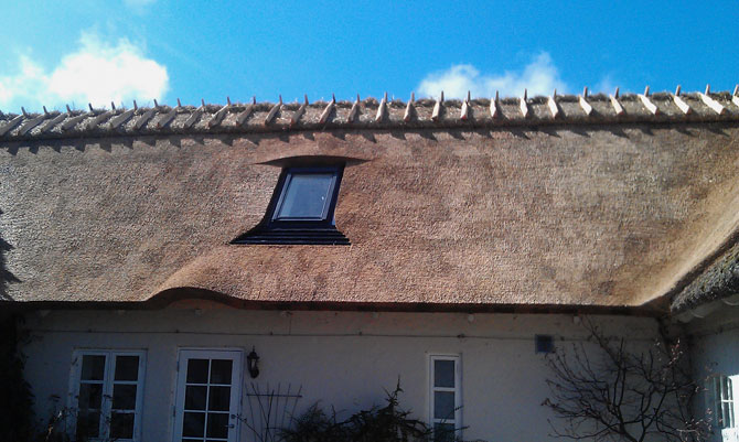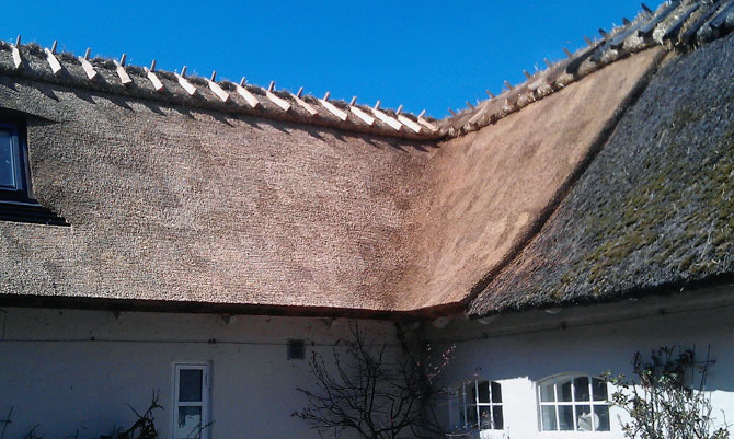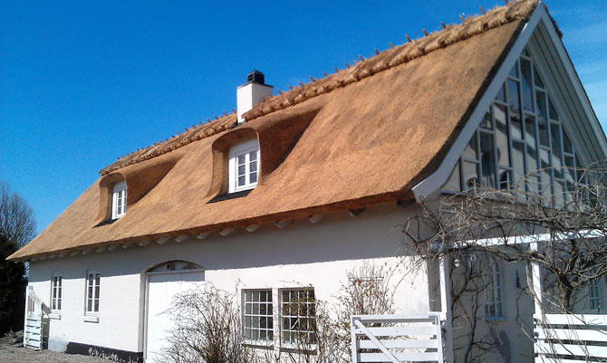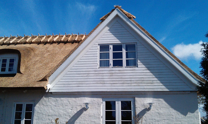 På en fornem ejendom blev der installeret et nyt stråtag på 300 m², forbedret med Sepatec-teknologi. For at opnå optimal isolering, blev ejendommen efterisoleret med 200 mm Ecowool, hvilket nødvendiggjorde en forhøjelse af alle spær. Dette omfattende projekt inkluderede udskiftning af samtlige lægter og vindskeder, installation af nye vinduer samt tilføjelsen af et ekstra Velux-vindue. Desuden blev der tilføjet udhæng over dørene for at forbedre æstetikken og funktionaliteten. Tagets rygning blev udført med havrehalm i hønsenet, understøttet af traditionelle rygtræer. Denne omfattende renovering blev fuldført på blot 6 uger, hvilket understreger vores effektivitet og dedikation til håndværket.