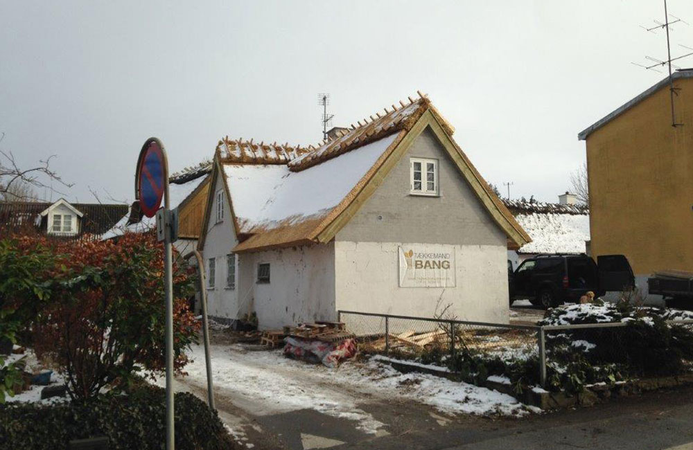 Kundesuccess i Jyllinge; 135 m2 stråtag med tømrerarbejde, brandsikring med Sepatec, tækket med flotte danske rør, mønning og kløvede egetræsrygtræer. En opgave der viser, at uanset vejret, så bliver vi færdige til tiden og altid med et smukt resultat.